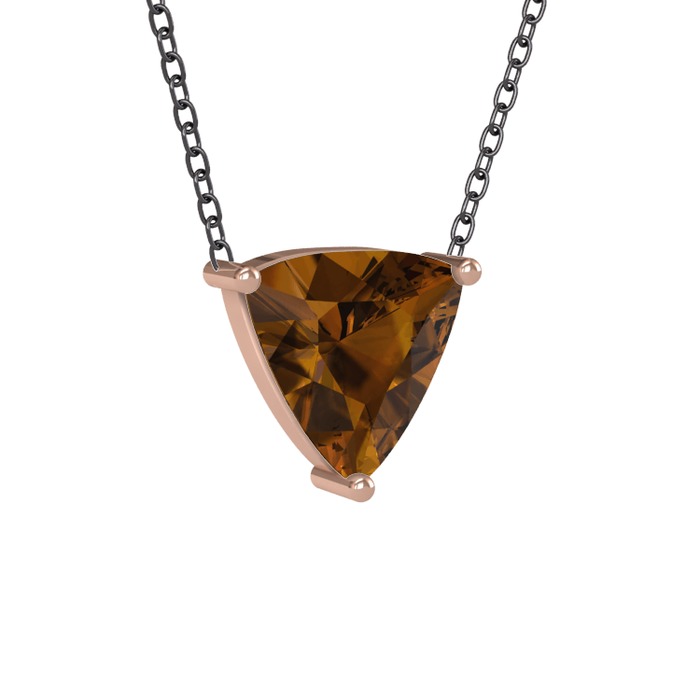 Dumanlı kuvars 8 ayar rose altın kolye (40 cm gümüş rolo zincir)
