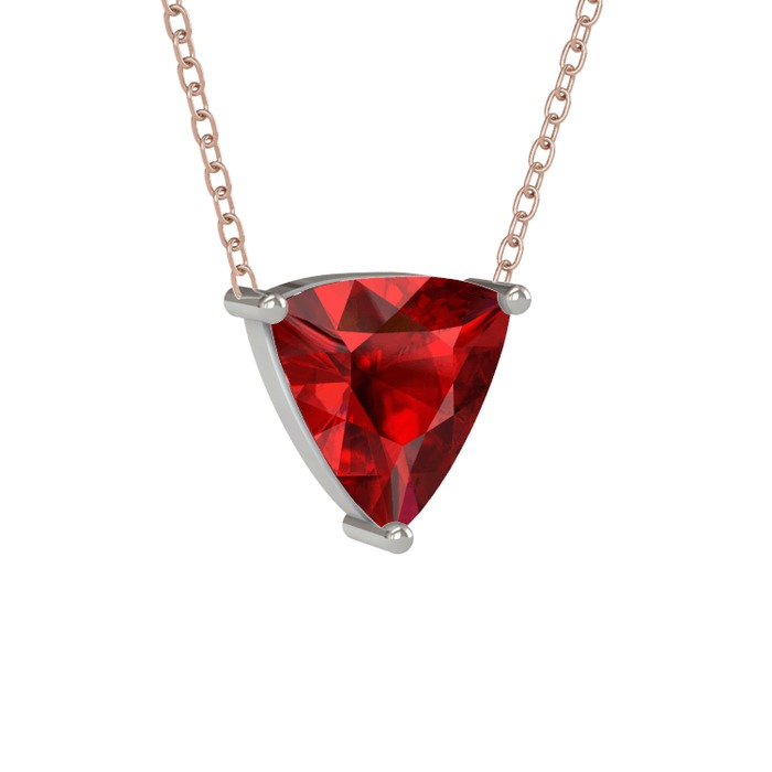 Garnet 14 ayar beyaz altın kolye (40 cm rose altın rolo zincir)
