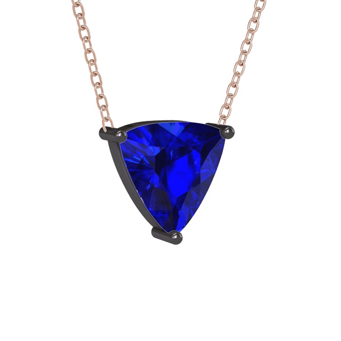 Lab safir 925 ayar siyah rodyum kaplama gümüş kolye (40 cm rose altın rolo zincir)