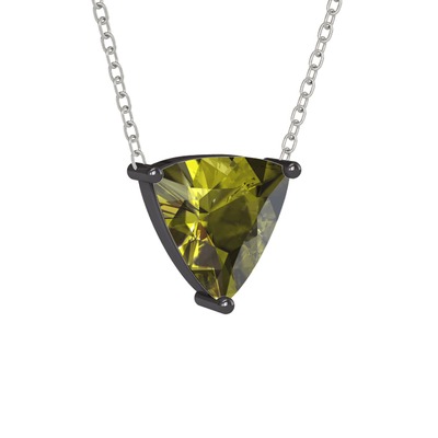 Peridot 925 ayar siyah rodyum kaplama gümüş kolye (40 cm beyaz altın rolo zincir)