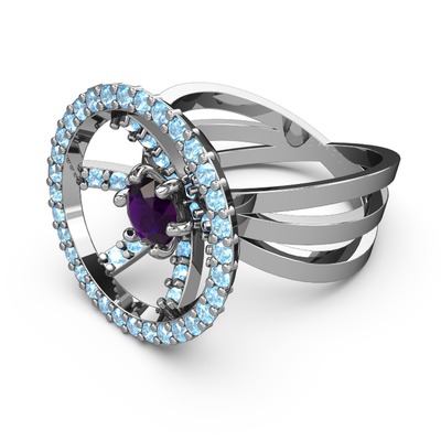 Akuamarin ve ametist 18 ayar beyaz altın yüzük