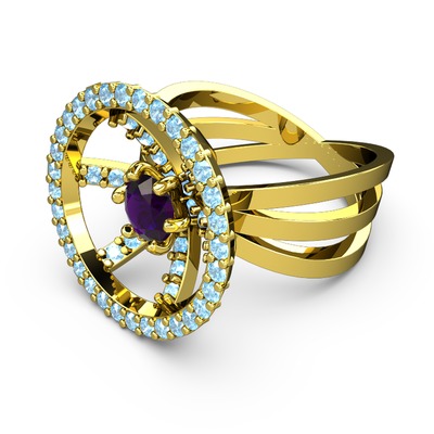 Akuamarin ve ametist 925 ayar altın kaplama gümüş yüzük