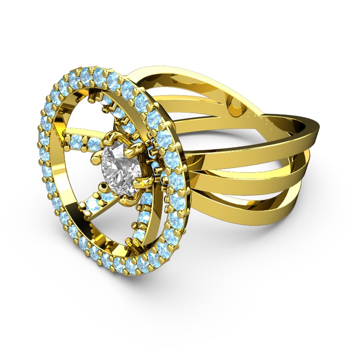 Akuamarin ve beyaz zirkon 925 ayar altın kaplama gümüş yüzük