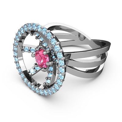 Akuamarin ve pembe kuvars 14 ayar beyaz altın yüzük
