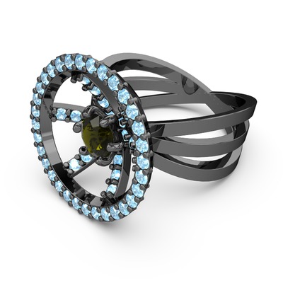 Akuamarin ve peridot 925 ayar siyah rodyum kaplama gümüş yüzük