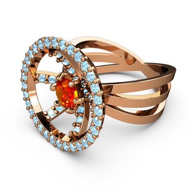 Akuamarin ve sitrin 8 ayar rose altın yüzük