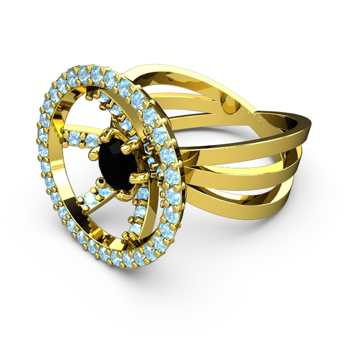 Akuamarin ve siyah zirkon 8 ayar altın yüzük