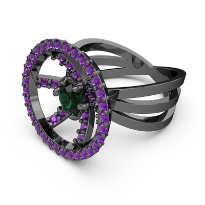 Ametist ve yeşil kuvars 925 ayar siyah rodyum kaplama gümüş yüzük
