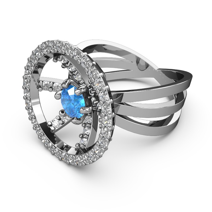 Beyaz zirkon ve akuamarin 8 ayar beyaz altın yüzük