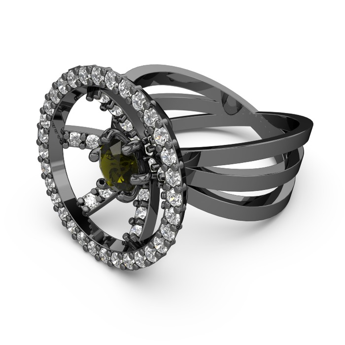 Beyaz zirkon ve peridot 925 ayar siyah rodyum kaplama gümüş yüzük