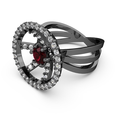 Beyaz zirkon ve rodolit garnet 925 ayar siyah rodyum kaplama gümüş yüzük