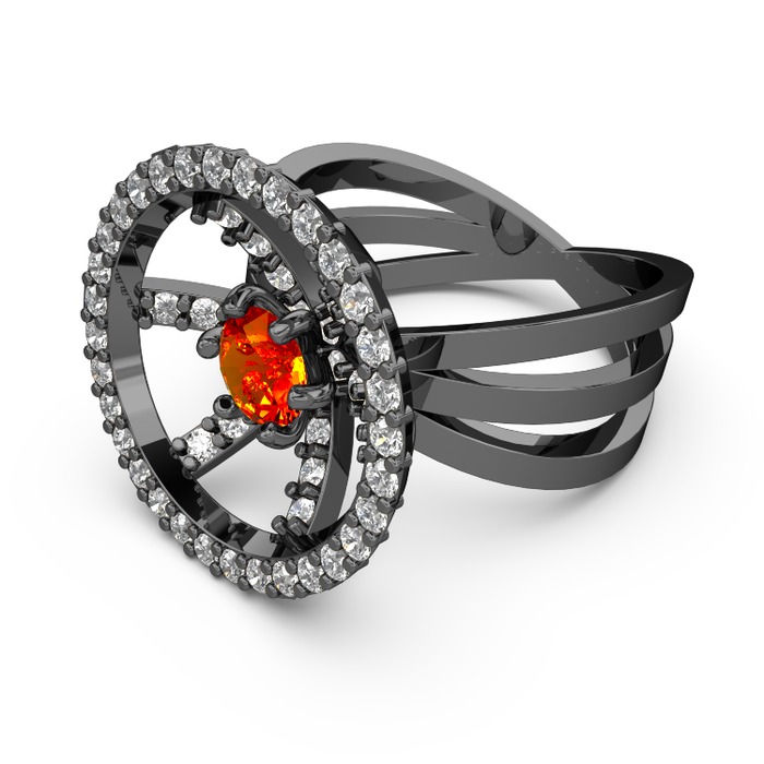 Beyaz zirkon ve sitrin 925 ayar siyah rodyum kaplama gümüş yüzük