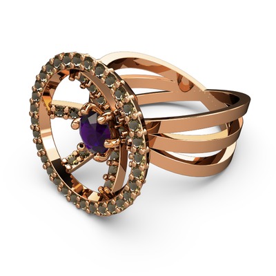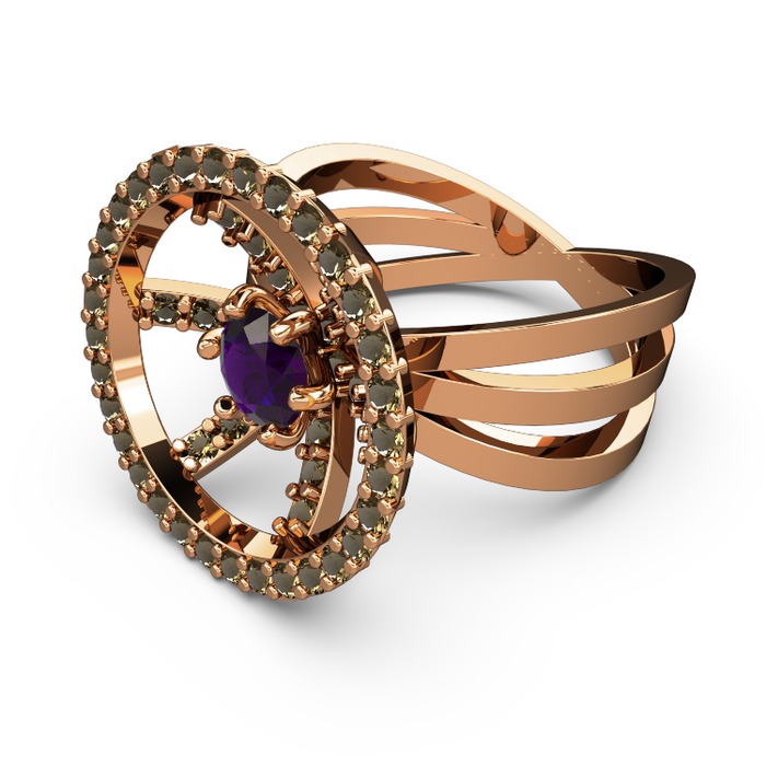 Dumanlı kuvars ve ametist 14 ayar rose altın yüzük