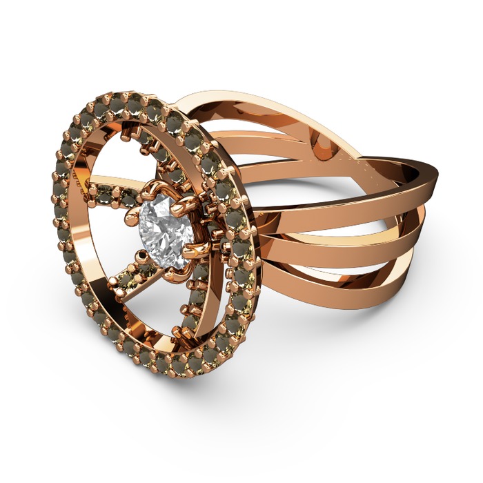 Dumanlı kuvars ve beyaz zirkon 925 ayar rose altın kaplama gümüş yüzük