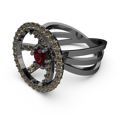 Dumanlı kuvars ve rodolit garnet 925 ayar siyah rodyum kaplama gümüş yüzük