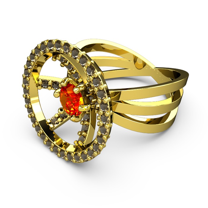 Dumanlı kuvars ve sitrin 8 ayar altın yüzük