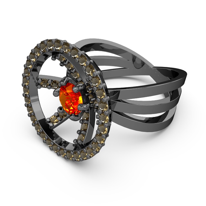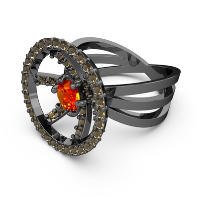 Dumanlı kuvars ve sitrin 925 ayar siyah rodyum kaplama gümüş yüzük