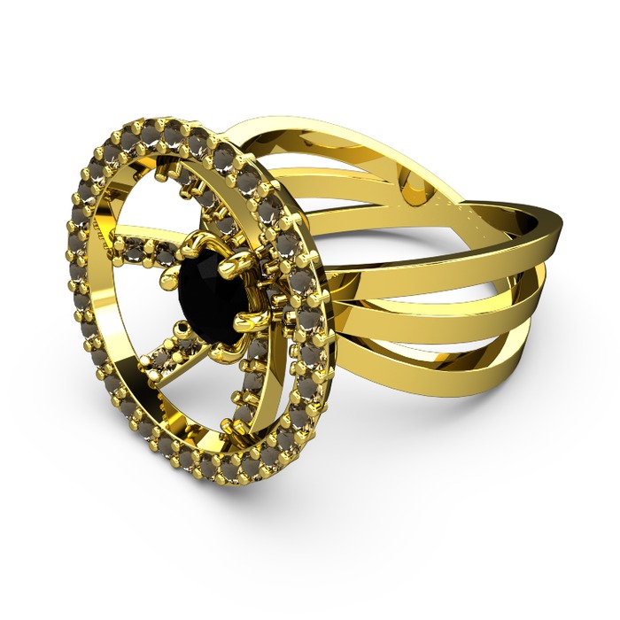 Dumanlı kuvars ve siyah zirkon 925 ayar altın kaplama gümüş yüzük
