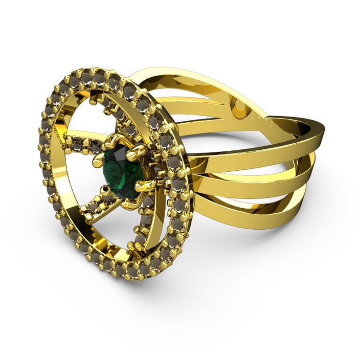 Dumanlı kuvars ve yeşil kuvars 8 ayar altın yüzük