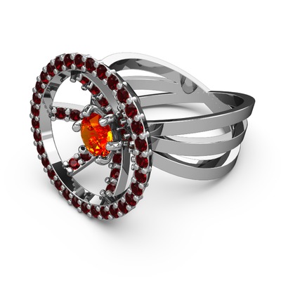 Garnet ve sitrin 18 ayar beyaz altın yüzük