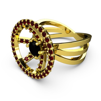 Garnet ve siyah zirkon 8 ayar altın yüzük