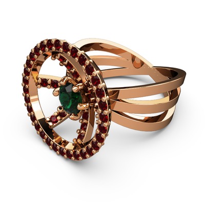 Garnet ve yeşil kuvars 18 ayar rose altın yüzük