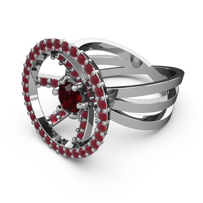 Kök yakut ve garnet 18 ayar beyaz altın yüzük