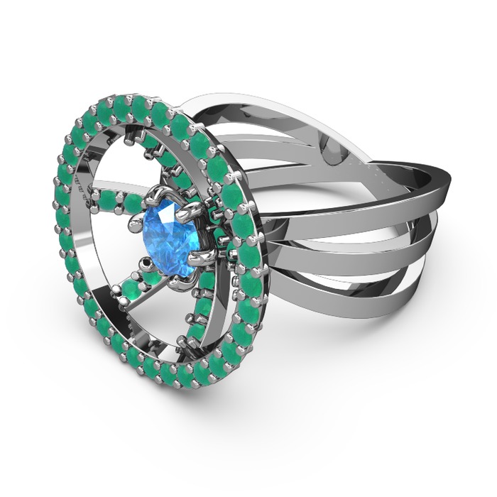 Kök zümrüt ve akuamarin 8 ayar beyaz altın yüzük