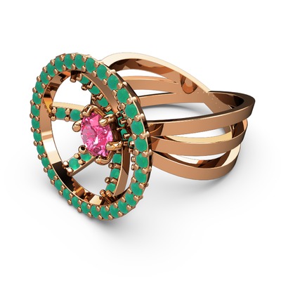 Kök zümrüt ve pembe kuvars 14 ayar rose altın yüzük