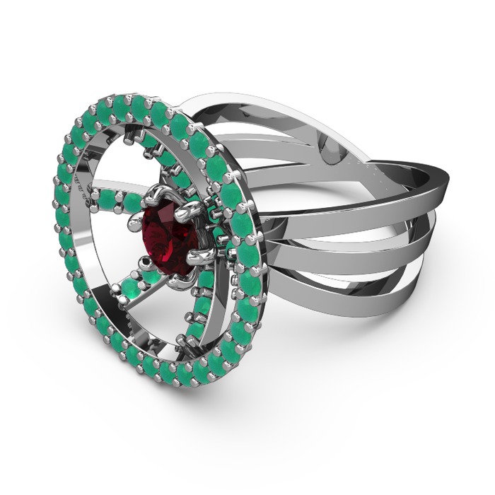 Kök zümrüt ve rodolit garnet 925 ayar gümüş yüzük