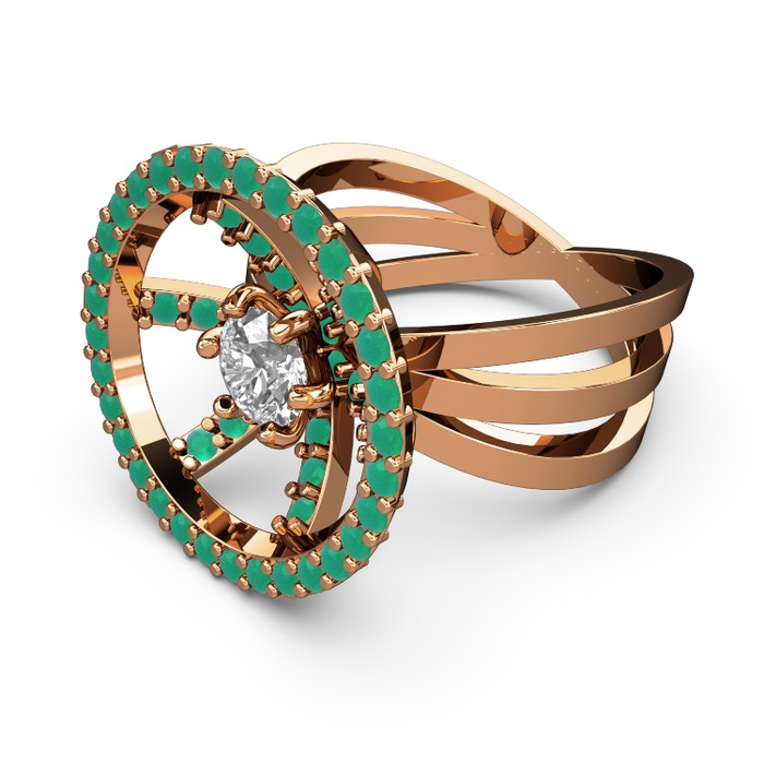 Kök zümrüt ve swarovski 925 ayar rose altın kaplama gümüş yüzük