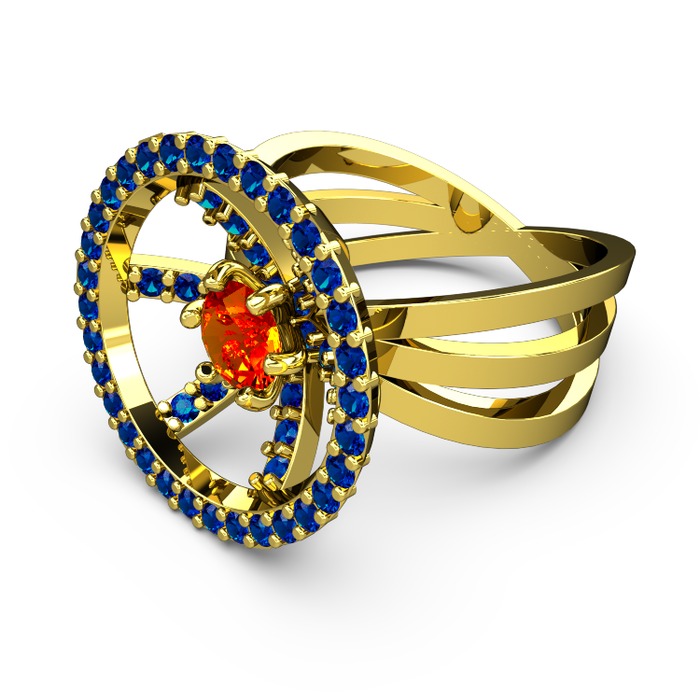 Lab safir ve sitrin 925 ayar altın kaplama gümüş yüzük