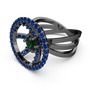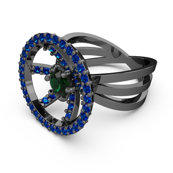 Lab safir ve yeşil kuvars 925 ayar siyah rodyum kaplama gümüş yüzük