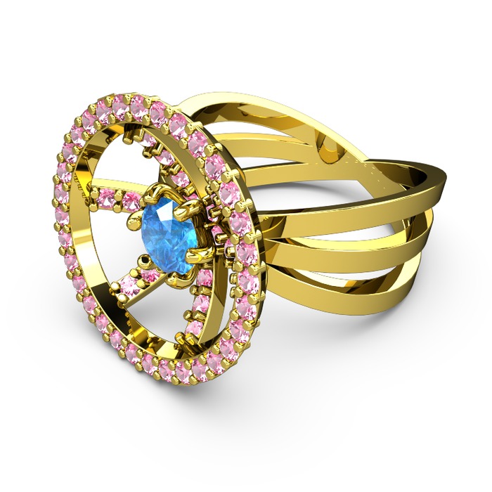 Pembe kuvars ve akuamarin 14 ayar altın yüzük