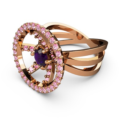 Pembe kuvars ve ametist 14 ayar rose altın yüzük
