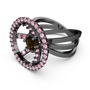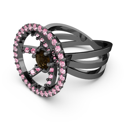 Pembe kuvars ve dumanlı kuvars 925 ayar siyah rodyum kaplama gümüş yüzük