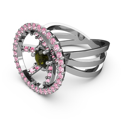 Pembe kuvars ve peridot 14 ayar beyaz altın yüzük