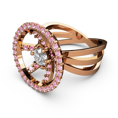 Pembe kuvars ve pırlanta 18 ayar rose altın yüzük (0.855 karat)