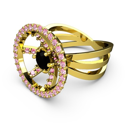 Pembe kuvars ve siyah zirkon 925 ayar altın kaplama gümüş yüzük