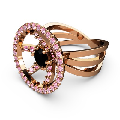 Pembe kuvars ve siyah zirkon 925 ayar rose altın kaplama gümüş yüzük