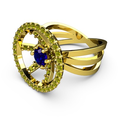 Peridot ve lab safir 8 ayar altın yüzük