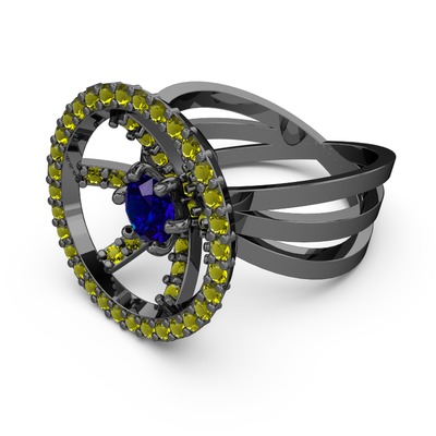 Peridot ve lab safir 925 ayar siyah rodyum kaplama gümüş yüzük