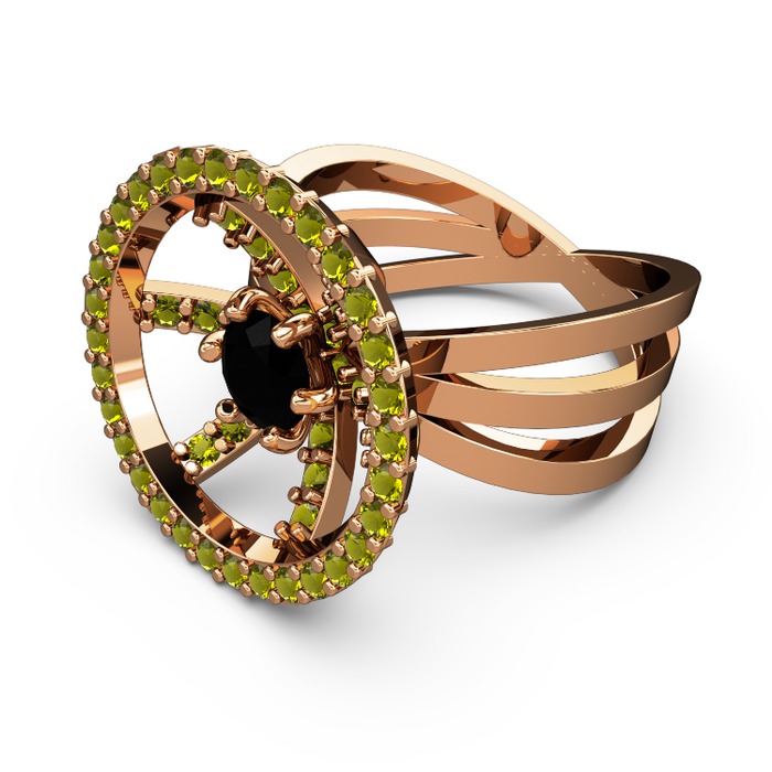 Peridot ve siyah zirkon 925 ayar rose altın kaplama gümüş yüzük