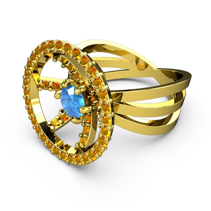 Sitrin ve akuamarin 8 ayar altın yüzük