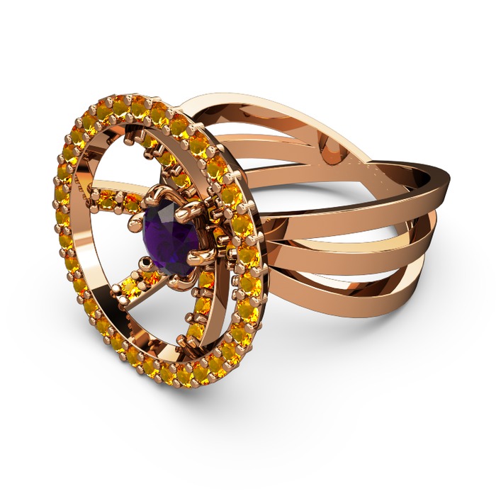 Sitrin ve ametist 18 ayar rose altın yüzük
