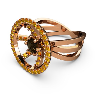 Sitrin ve dumanlı kuvars 925 ayar rose altın kaplama gümüş yüzük
