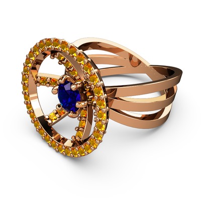 Sitrin ve lab safir 18 ayar rose altın yüzük