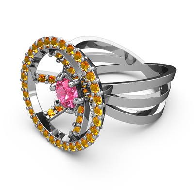Sitrin ve pembe kuvars 925 ayar gümüş yüzük