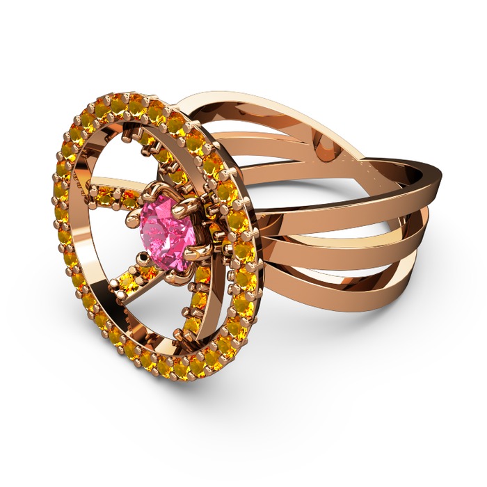 Sitrin ve pembe kuvars 925 ayar rose altın kaplama gümüş yüzük