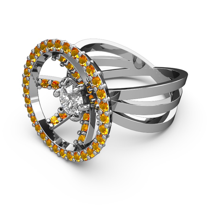 Sitrin ve pırlanta 8 ayar beyaz altın yüzük (0.855 karat)